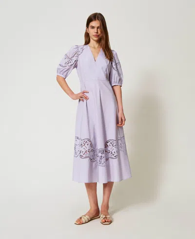 Robe Longue En Popeline Avec Broderies Anglaises In Purple
