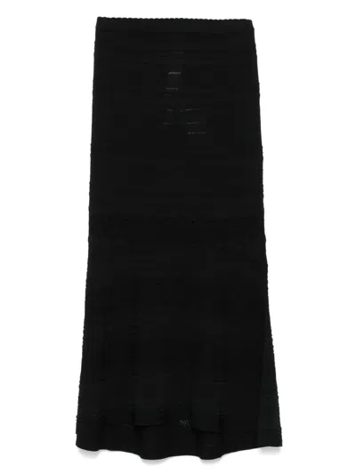 Black Skirt With Ruched Trims And Perforated Design In Wool Blend Woman