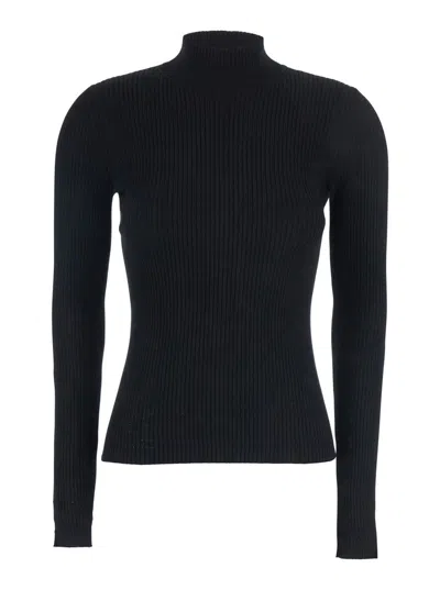 Fitted Ribbed Knit Sweater With High Neckline In Black