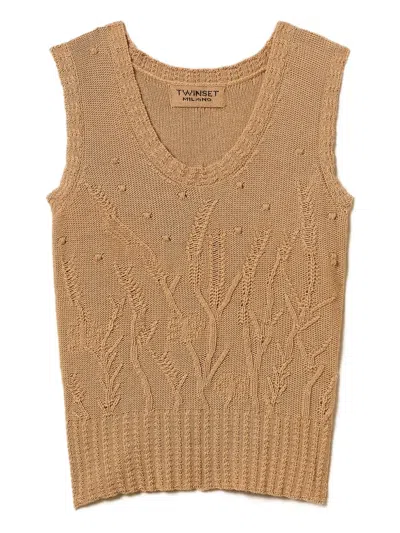 Twin-set Buttoned Cotton Vest In Green