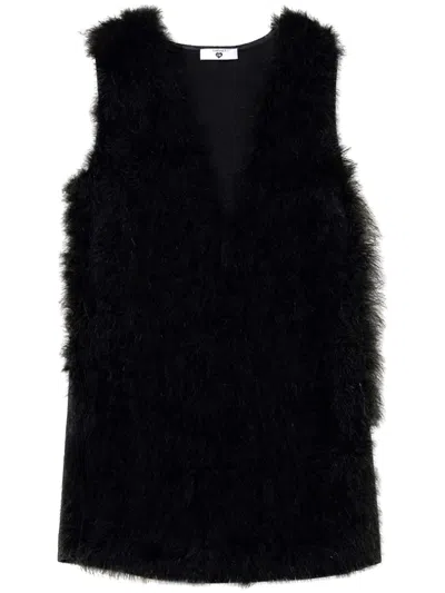 Twin-set Faux Fur Vest With Leather Back In Brown