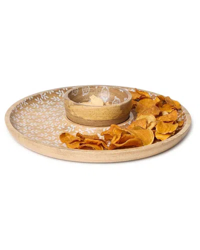 Block Print Chip & Dip Set With Removeable Bowl In Brown