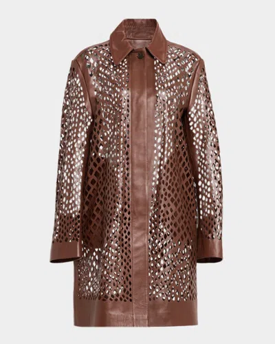 Edinburgh Laser-cut Leather Coat In Brown