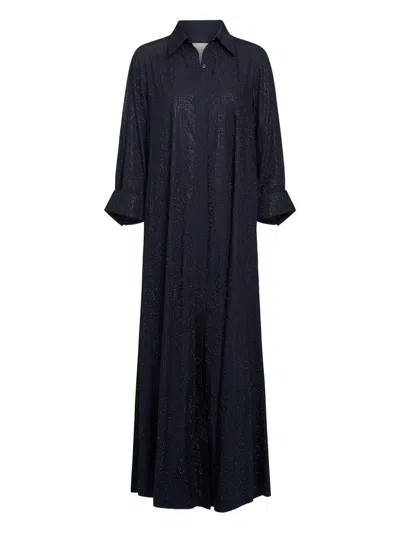 Mm Pleated Maxi Shirtdress In Oxford Blue