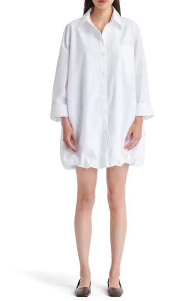 Lunch At Loulou Long Sleeve Bubble Hem Mini Shirtdress In White