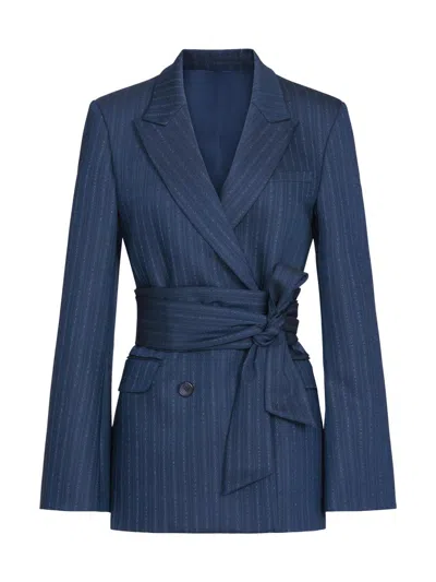 Women's Delancey Striped Stretch-wool Belted Blazer In Orange