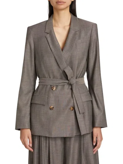 Women's Wool-blend Tie-waist Smoking Jacket In Brown