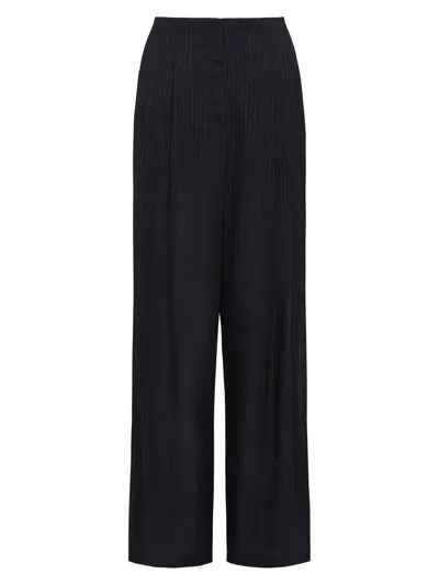 Women's Carries Pinstriped Wool-blend High-rise Wide-leg Pants In Black