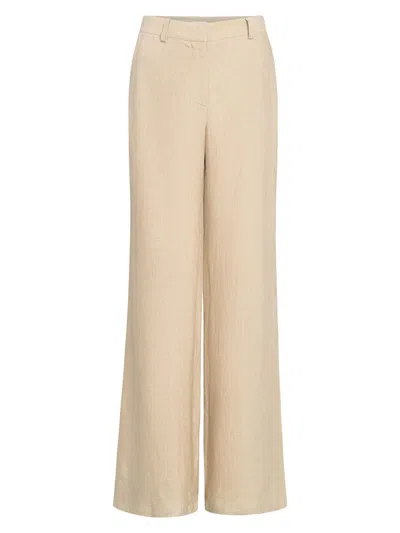 Women's Avery Striped Wool-linen Wide-leg Pants In Brown