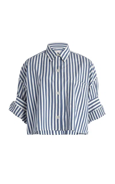Next Ex Cropped Striped Cotton-poplin Shirt In Brown