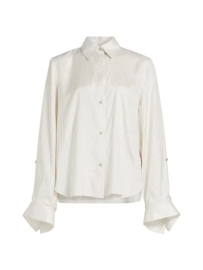 The New Morning After Silk Stripe Button-front Shirt In White Multi
