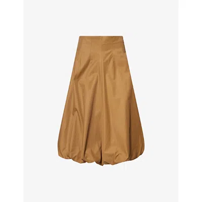 Womens British Khaki Full Intentions Voluminous Cotton-blend Midi Skirt In Gold