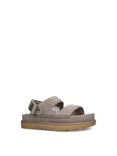 Goldenstar Glide Suede Sandals Smoke Plume In Gray