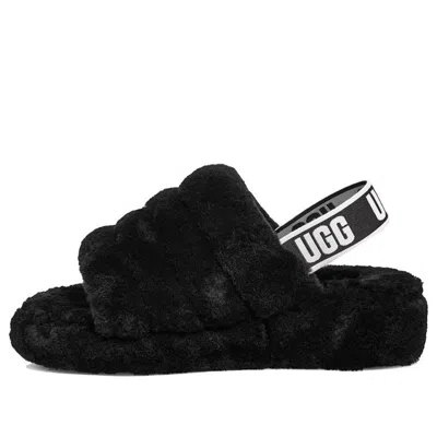 Plush Lambskin Mule Slippers With Contrasting Trim In Black