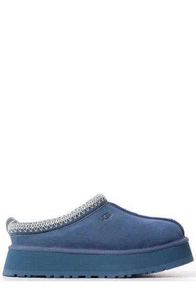 Tazz Braid-edge Suede Flatform Mules In Blue
