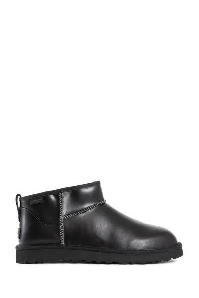 Classic Ultra Mini Leather Ankle Boots With Plush Lining In Black