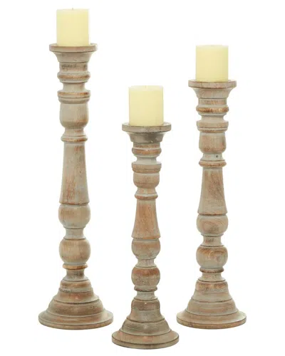 Set Of 3 Mango Wood Handmade Candle Holders With Turned Style In Multi