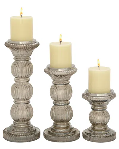 The Novogratz Set Of 3 Glass Handmade Turned Pillar Candle Holders