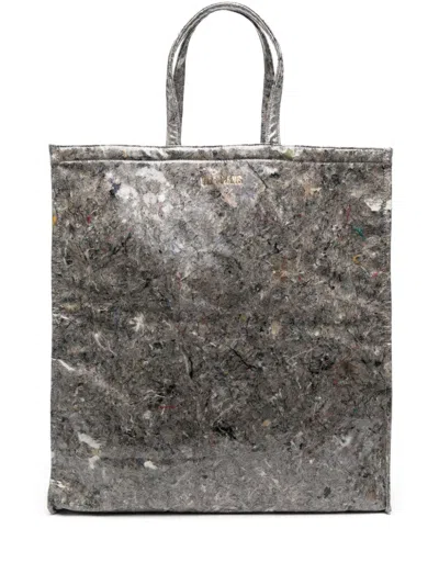 Black Tote With Crinkled Texture And Spacious Interior In Brown