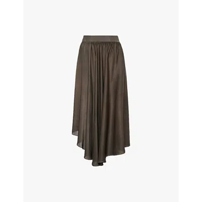 Omens Dark Brown Gentian Elasticated-waist Silk Maxi Skirt