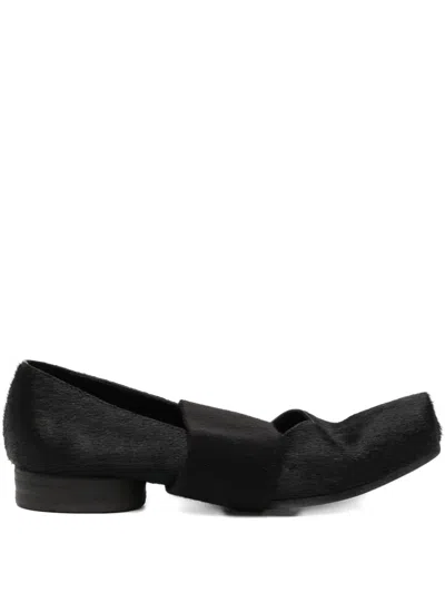 Leather Pumped Ballerina In Black