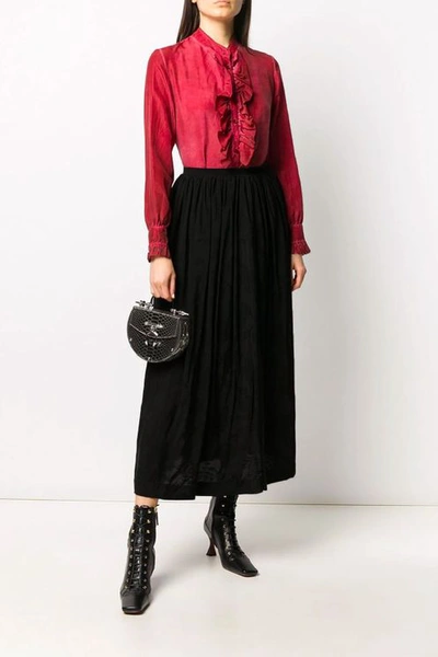 Gillian Long Skirt Pleated Side Pockets Slit In Brown