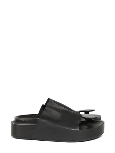 Leather Slippers With Square Toe In Black