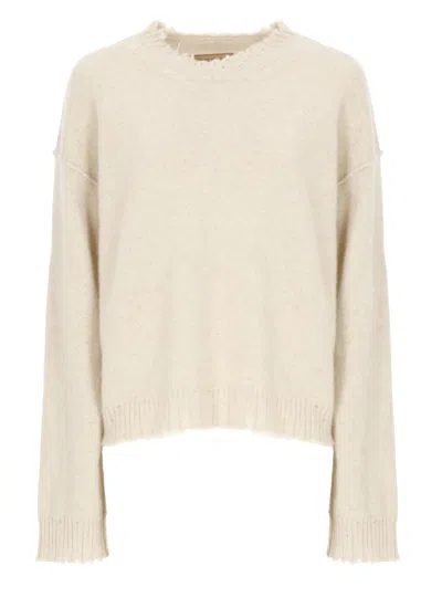 Beige Cashmere Sweater With Ribbed Detailing In Multi