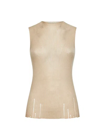 Tan Ribbed Wool Knit Tank Top In Brown
