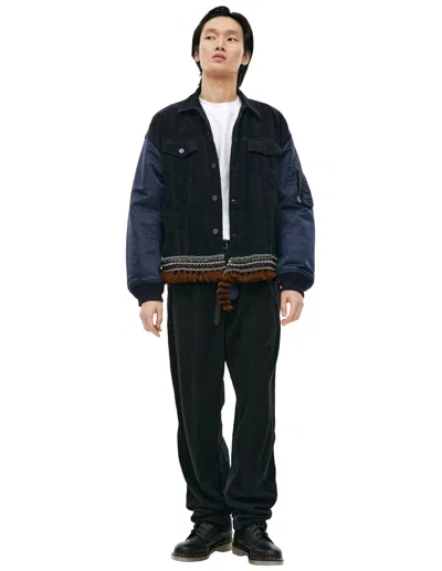 Bomber Jacket With Contrast Panels And Embroidery In Black