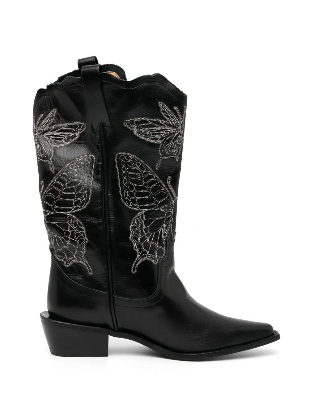 50mm Butterfly-embroidered Boots In Black