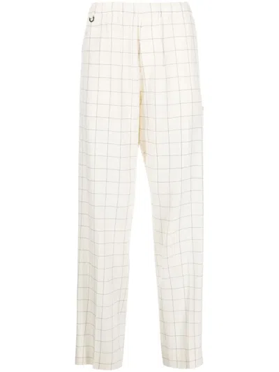 All-over Checkered Pants With Elastic Waistband In Neutral