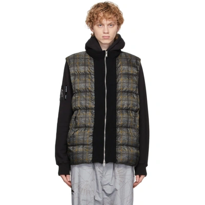 Cross Print Hooded Quilted Sleeveless Jacket In Brown