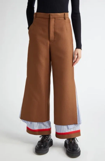 Spliced Mixed Media Pants In Brown
