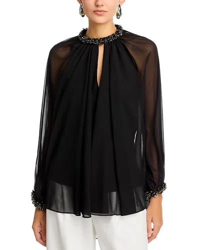 Avery Beaded Chiffon Cape Blouse In Black