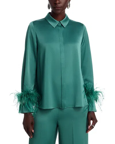 Luna Feather-cuff Satin Blouse In Green