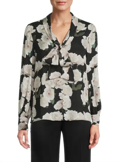 Women's Dara Floral Stretch Silk Blouse In Black