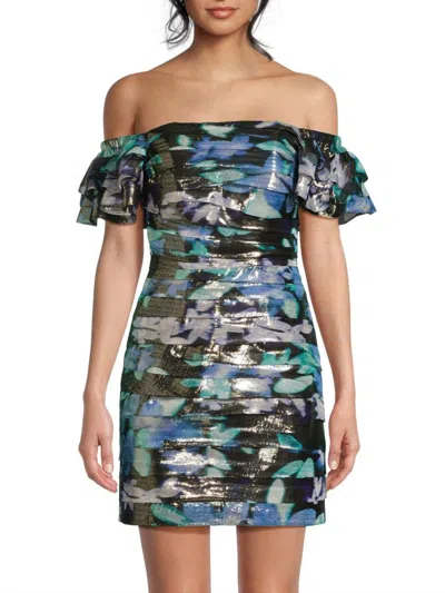 Women's Taja Metallic Lace One-shoulder Minidress In Green