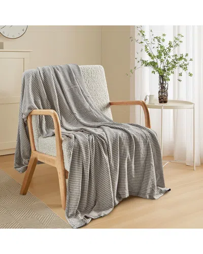 Lightweight Breathable Waffle Weave Knit Throw Blanket In Gray