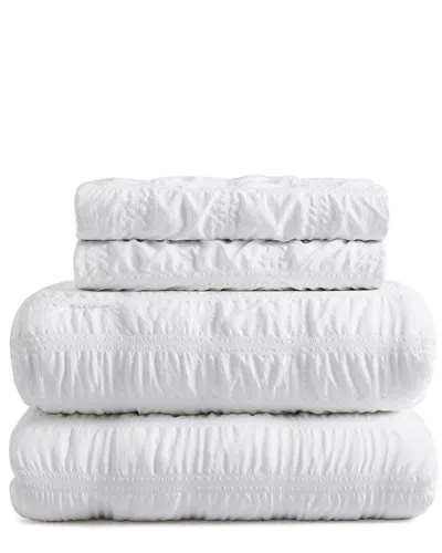 Ruched Comforter Set In White