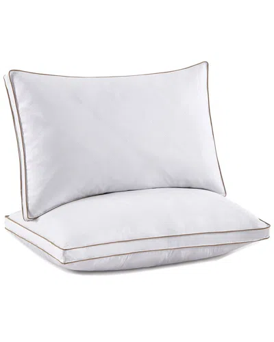 Set Of 2 Medium-firm Goose Feather Bed Pillows With Quilted Cover In White