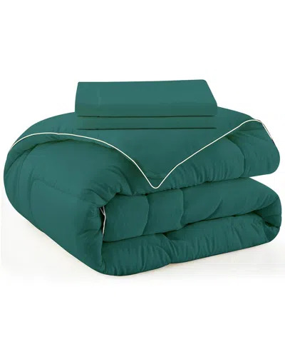 All-seasons Silky Down Alternative Comforter Set With Sateen Wrapping In Green