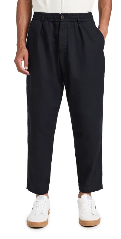 Mens Navy Twill Double-pleat Trousers In Blue