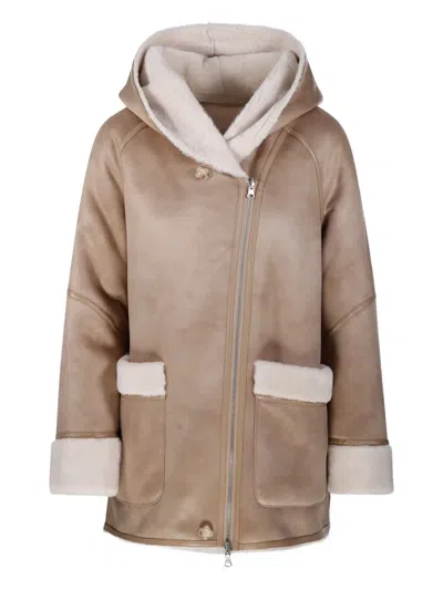 Beige Shearling Coat With Round Neck And Front Closure In Faux Fur Woman In Brown
