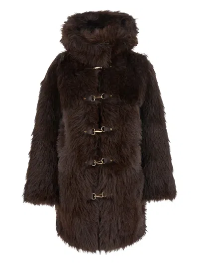 Brown Shearling With Hidden Front Fastening In Faux Fur Woman