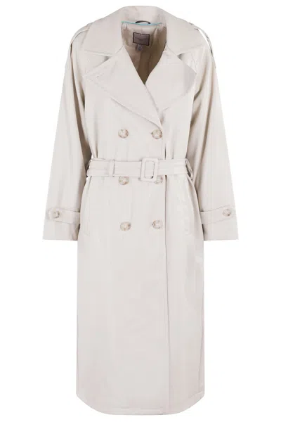 Wide-fit Trench Coat In Eco-friendly Faux Leather In White