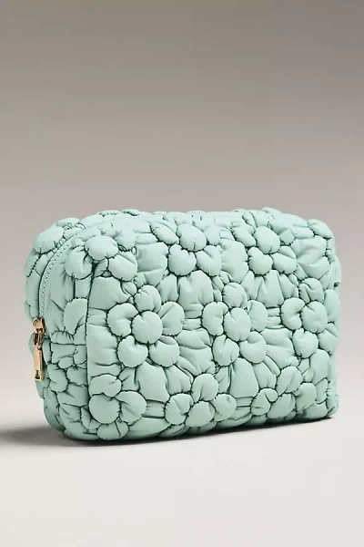 Floral Quilted Puffer Cosmetic Pouch In Green