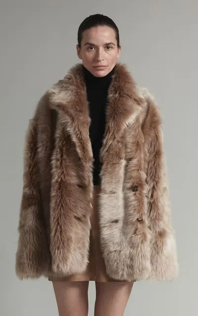 Jaci Oversized Long-hair Shearling Jacket In Blue