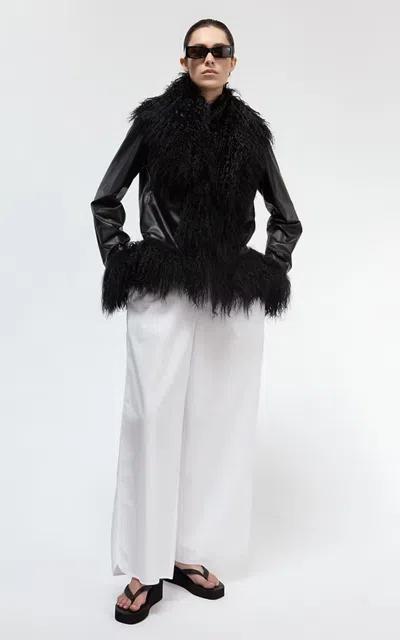 Jytte Shearling-trimmed Leather Jacket In Black