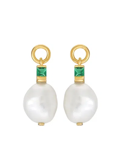 18ct Gold-plated Vermeil Silver Emily Baroque Pearl And Emerald Drop Earrings In White